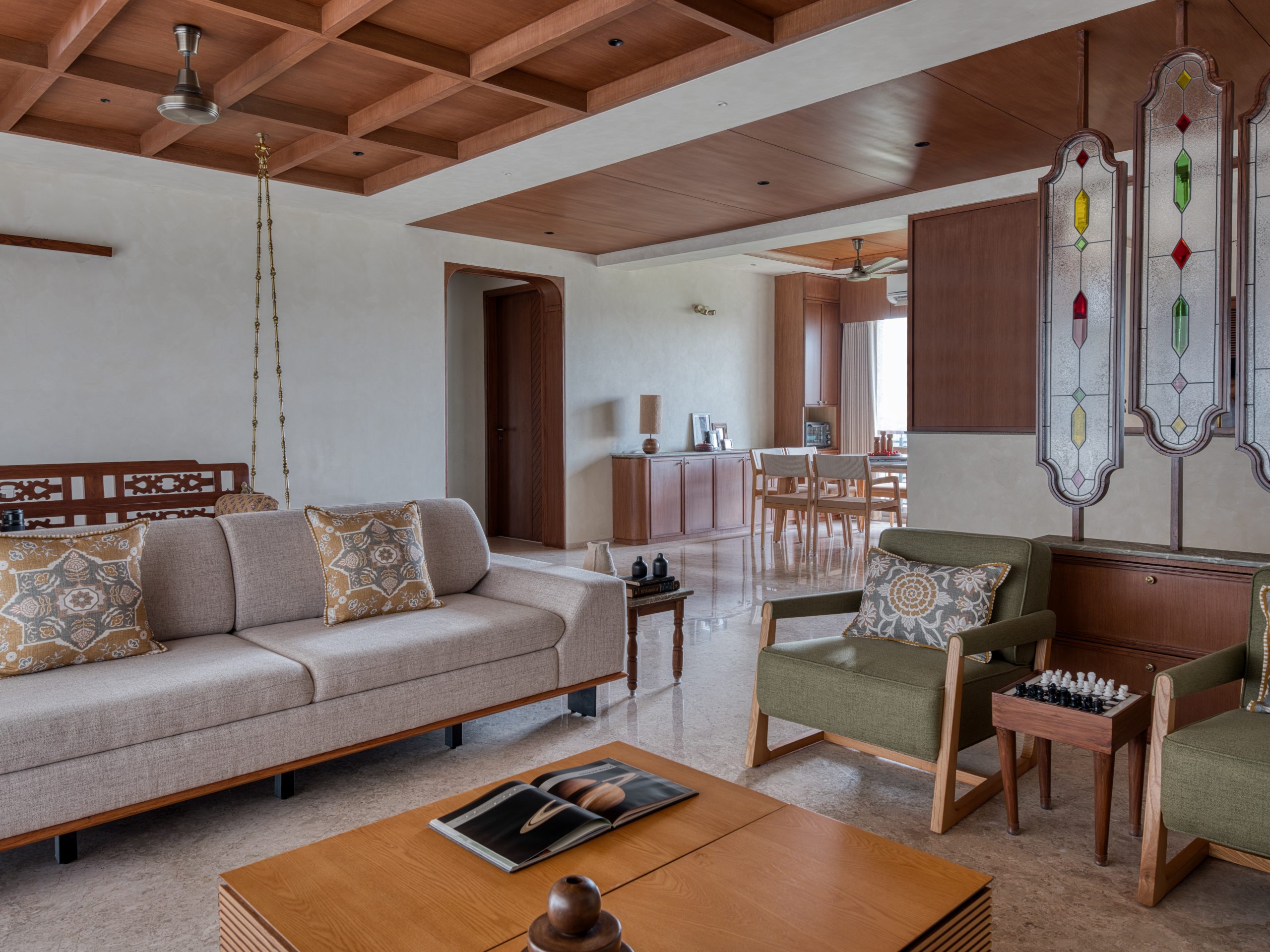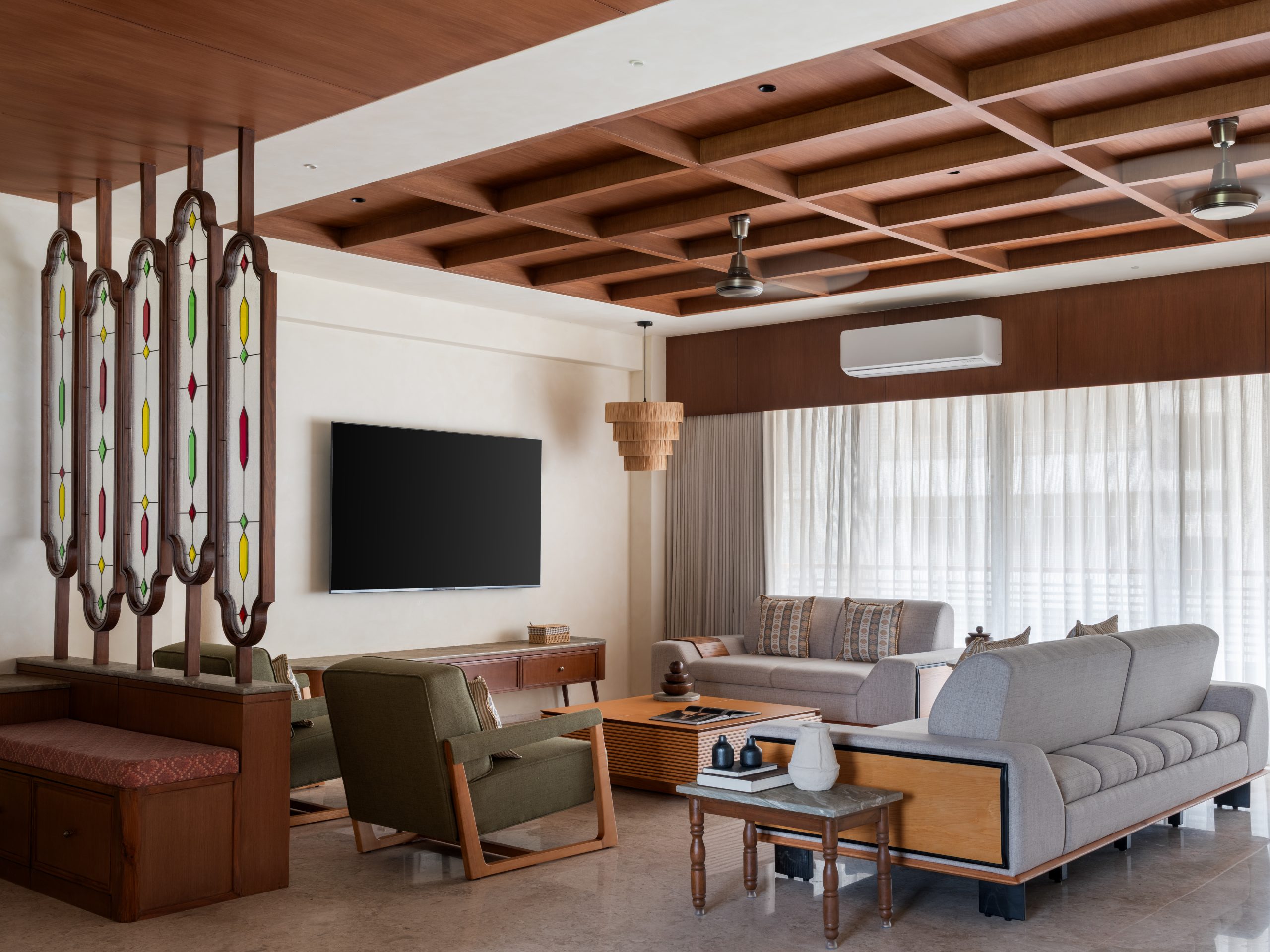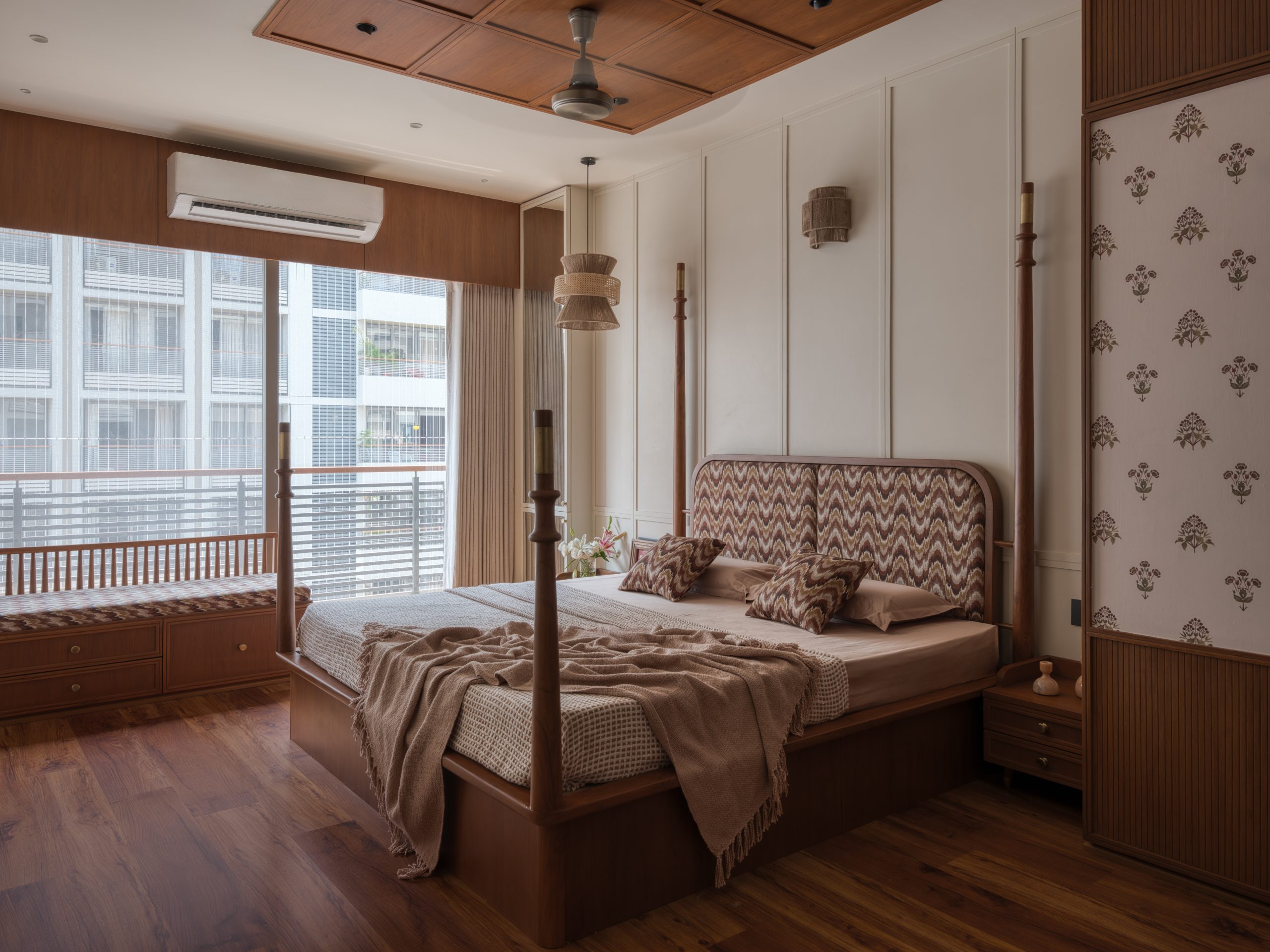 A cozy, naturally lit space designed with warm wood tones and balanced modern detailing.